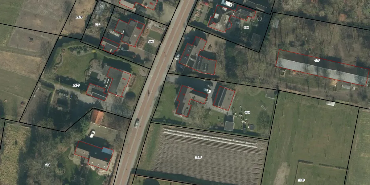 Het adres is gelegen op perceel 518 in de sectie H en de kadastrale gemeente Hoeven. De kadastrale aanduiding is aldus HVN00-H-518. Het perceel is 1735 m² groot. Dat is kleiner dan de gemiddelde perceeloppervlakte in Hoeven, dat op 4393,45 m² ligt. Het grootste perceel in de kadastrale gemeente is 33,1 ha. Het kleinste perceel heeft een oppervlakte van 0 m². Op het perceel bevinden zich geen andere adressen. De huidige grenzen van het perceel zijn digitaal in de Basisregistratie Kadaster (BRK) geregistreerd op 28-06-2010.