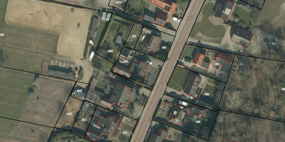 Het adres is gelegen op perceel 594 in de sectie H en de kadastrale gemeente Hoeven. De kadastrale aanduiding is aldus HVN00-H-594. Het perceel is kleiner dan gemiddeld in Hoeven. Het perceel is 617 m² groot, terwijl het gemiddelde ligt op 4393,45 m². De grootste perceeloppervlakte in de kadastrale gemeente is 33,1 ha. De kleinste oppervlakte bedraagt 0 m². Dit is het enige adres dat aanwezig is op het perceel. De huidige grenzen van het perceel zijn digitaal in de Basisregistratie Kadaster (BRK) geregistreerd op 04-09-2009.