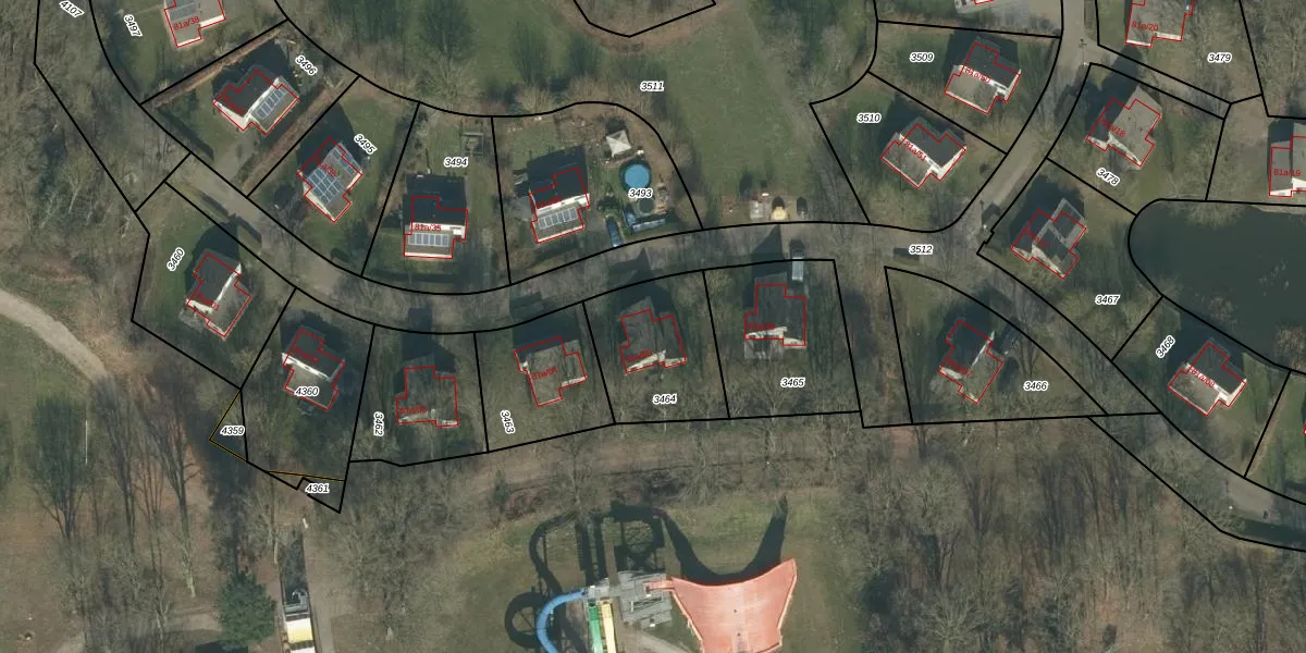 Het adres is gelegen op perceel 3464 in de sectie G en de kadastrale gemeente Hoeven. De kadastrale aanduiding is aldus HVN00-G-3464. Het perceel is 393 m² groot. Dat is kleiner dan de gemiddelde perceeloppervlakte in Hoeven, dat op 4393,45 m² ligt. De grootste perceeloppervlakte in de kadastrale gemeente is 33,1 ha. De kleinste oppervlakte bedraagt 0 m². Dit is het enige adres dat aanwezig is op het perceel. In de Basisregistratie Kadaster (BRK) werden de grenzen van het perceel geregistreerd op 04-09-2009.