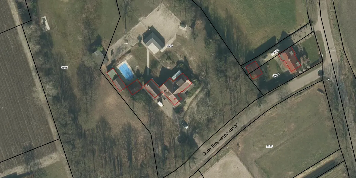 Het perceel waarop Oude Bredasepostbaan 2-a staat heeft een oppervlakte van 6310 m². Dit is een zeer groot perceel. De perceeloppervlakte wordt geregistreerd door het Kadaster. Gedetailleerde informatie over de maten van dit perceel kunt u vinden in het rapport Kadastrale kaart met maatvoering van Oude Bredasepostbaan 2-a.