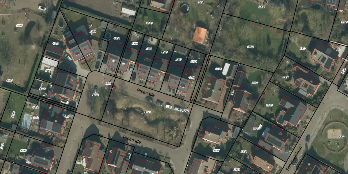 Rietmade 8-b is gelegen op kadastraal perceel HVN00D4357. Deze kadastrale aanduiding is uniek en wordt gebruikt door het Kadaster om eigendomsrechten en andere zakelijke rechten vast te leggen. Het perceel maakt onderdeel uit van de kadastrale gemeente Hoeven.