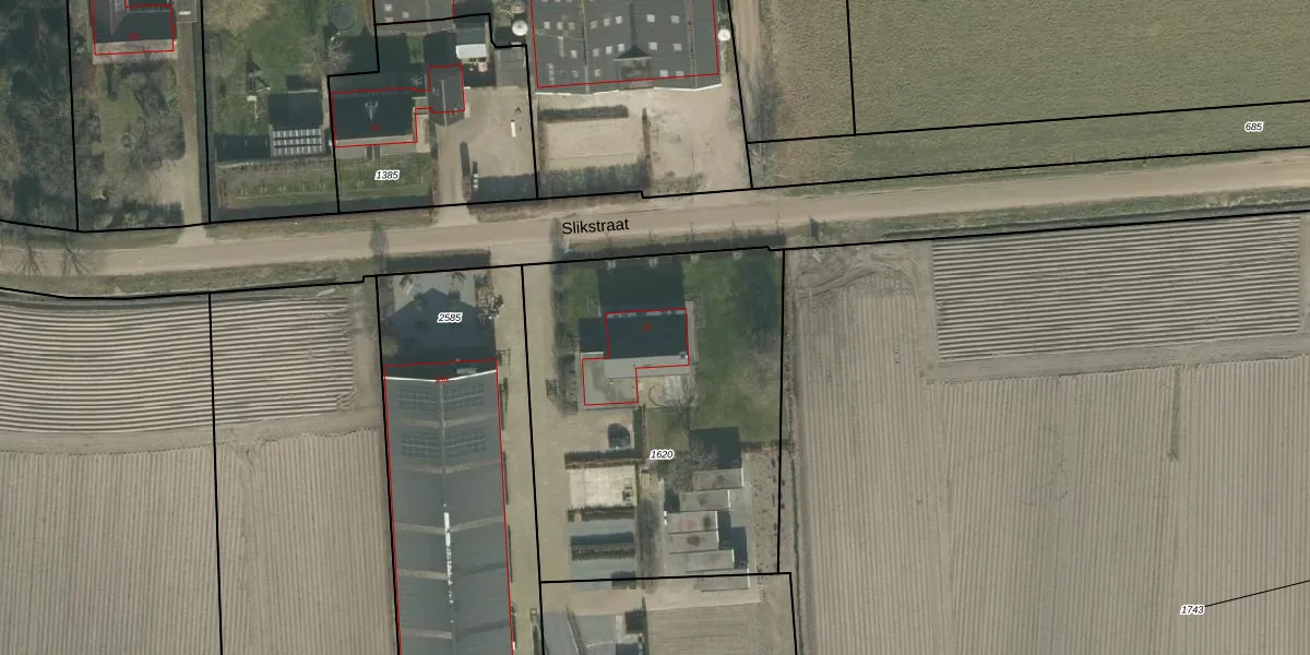 Het perceel waarop Slikstraat 15 staat heeft een oppervlakte van 1875 m². Dit is een zeer groot perceel. De perceeloppervlakte wordt geregistreerd door het Kadaster. Gedetailleerde informatie over de maten van dit perceel kunt u vinden in het rapport Kadastrale kaart met maatvoering van Slikstraat 15.
