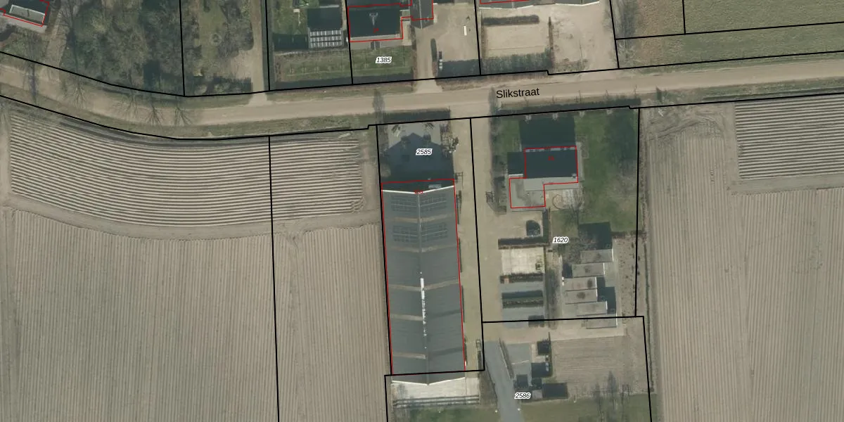 Het perceel waarop Slikstraat 15-a staat heeft een oppervlakte van 1325 m². Dit is een zeer groot perceel. De perceeloppervlakte wordt geregistreerd door het Kadaster. Gedetailleerde informatie over de maten van dit perceel kunt u vinden in het rapport Kadastrale kaart met maatvoering van Slikstraat 15-a.