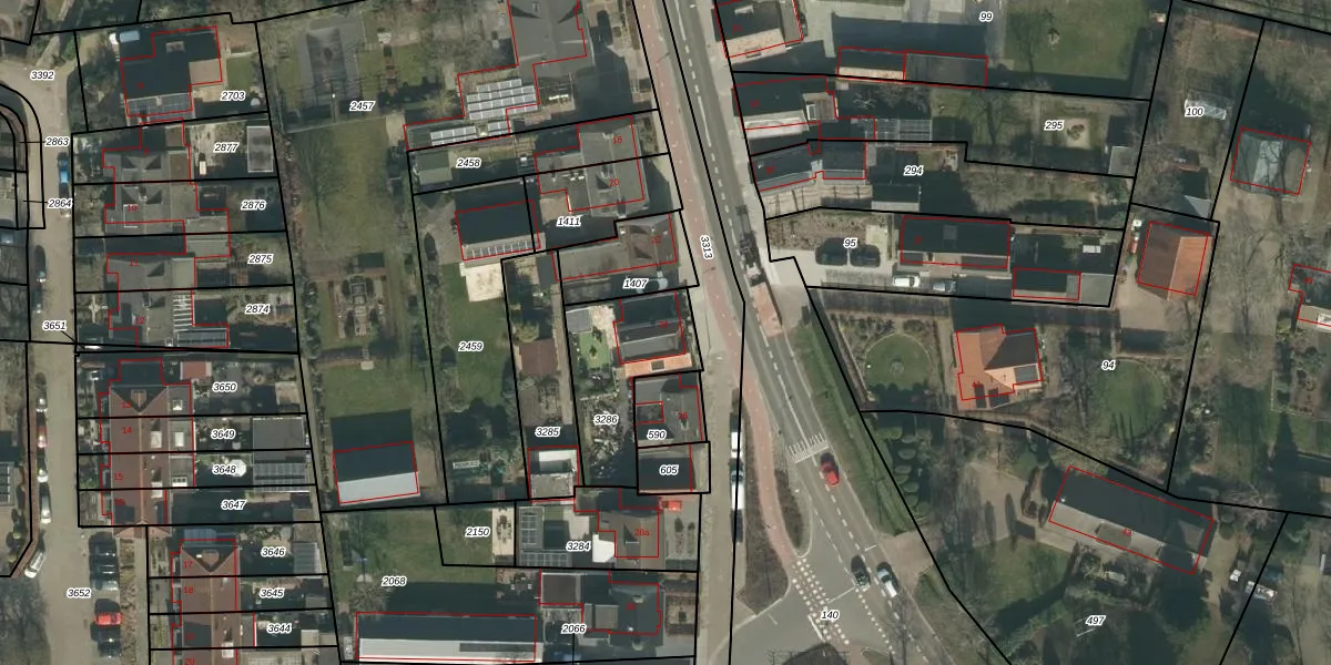 Het perceel waarop het adres ligt is HVN00-D-3286. De afkorting 'HVN00' staat voor kadastrale gemeente Hoeven. De gemiddelde perceelgrootte in Hoeven is 4393,45 m². Dit perceel is kleiner: de perceeloppervlakte bedraagt 384 m². Het grootste perceel in de kadastrale gemeente is 33,1 ha. Het kleinste perceel heeft een oppervlakte van 0 m². Op het perceel bevinden zich geen andere adressen. De laatste wijziging in het de Basisregistratie Kadaster (BRK) was op 16-09-2009.