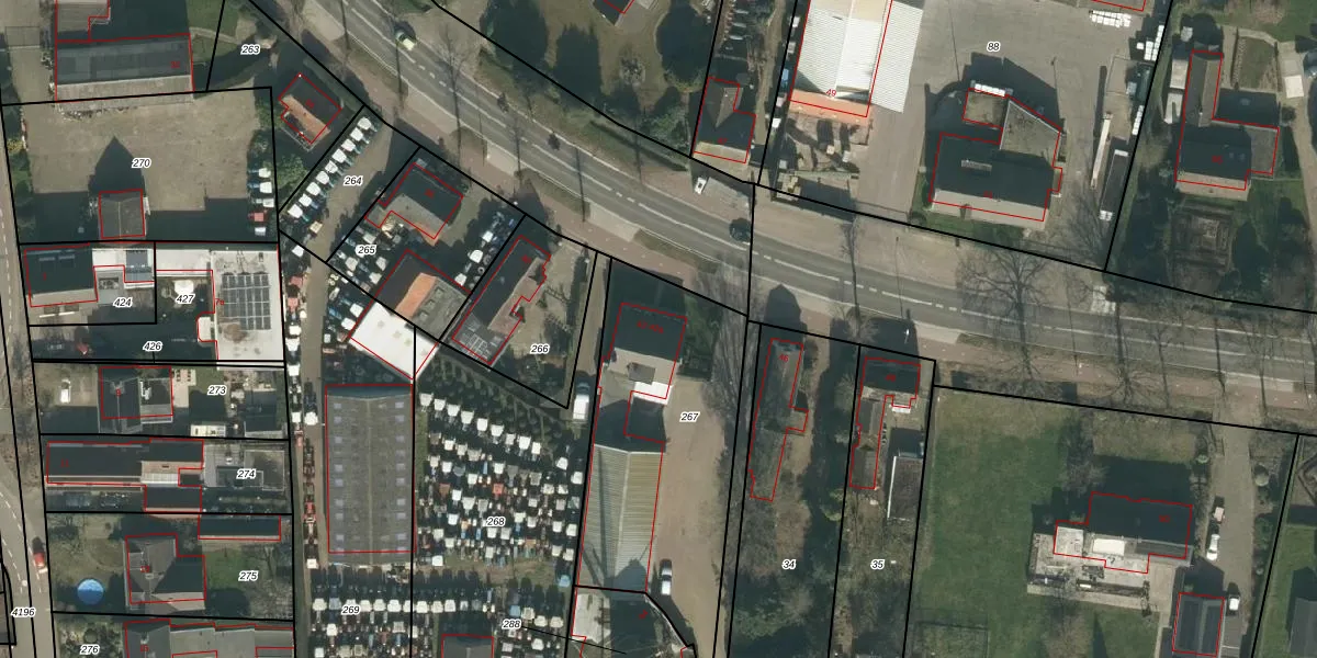 Het perceel waarop het adres ligt is HVN00-L-267. De afkorting 'HVN00' staat voor kadastrale gemeente Hoeven. De gemiddelde perceelgrootte in Hoeven is 4393,45 m². Dit perceel is kleiner: de perceeloppervlakte bedraagt 1100 m². Het kleinste perceel in de kadastrale gemeente is 0 m² groot. De grootste perceeloppervlakte is 33,1 ha. Er zijn 2 adressen aanwezig op het perceel. De laatste wijziging in het de Basisregistratie Kadaster (BRK) was op 21-09-2009.