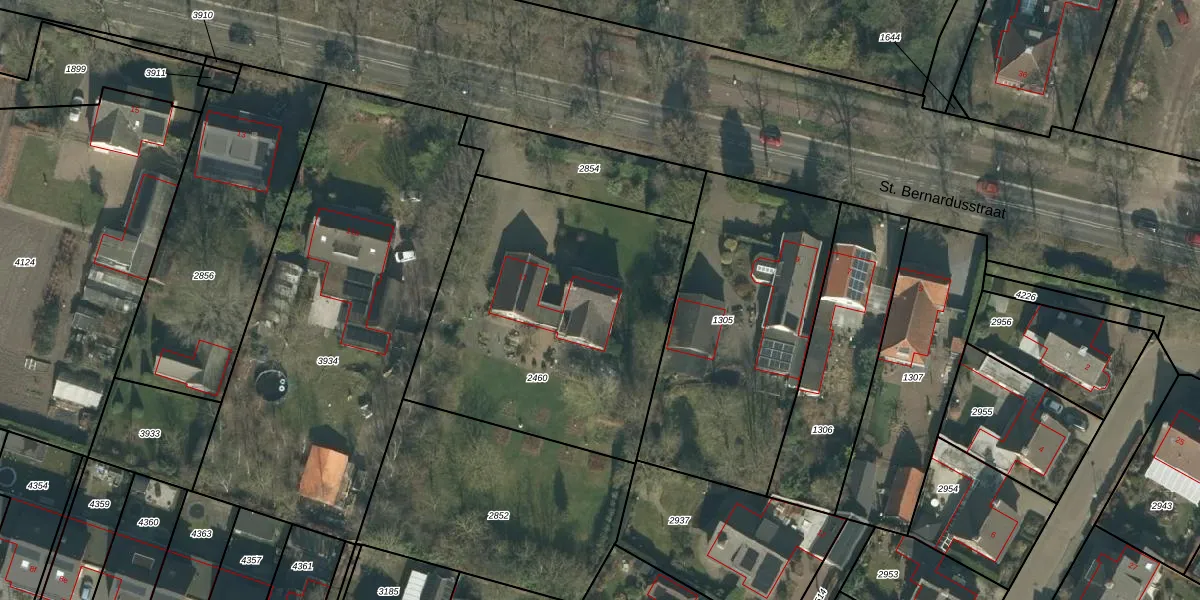 Het perceel waarop St. Bernardusstraat 11 staat heeft een oppervlakte van 1558 m². Dit is een zeer groot perceel. De perceeloppervlakte wordt geregistreerd door het Kadaster. Gedetailleerde informatie over de maten van dit perceel kunt u vinden in het rapport Kadastrale kaart met maatvoering van St. Bernardusstraat 11.