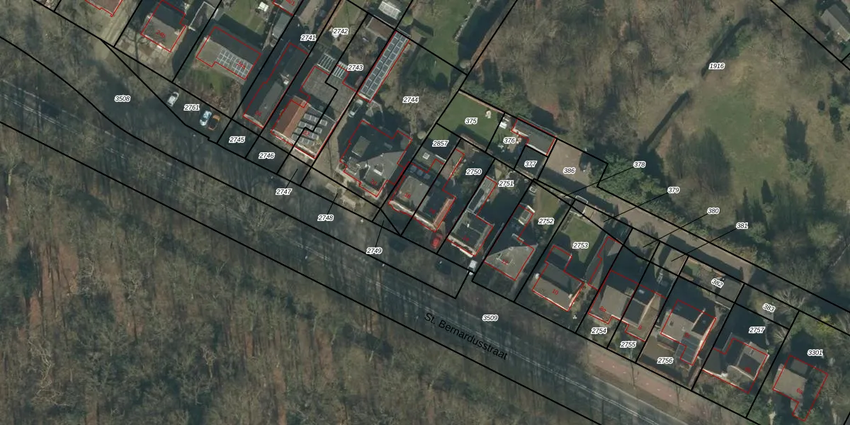 St. Bernardusstraat 16 is gelegen op kadastraal perceel HVN00D2750. Deze kadastrale aanduiding is uniek en wordt gebruikt door het Kadaster om eigendomsrechten en andere zakelijke rechten vast te leggen. Het perceel maakt onderdeel uit van de kadastrale gemeente Hoeven.