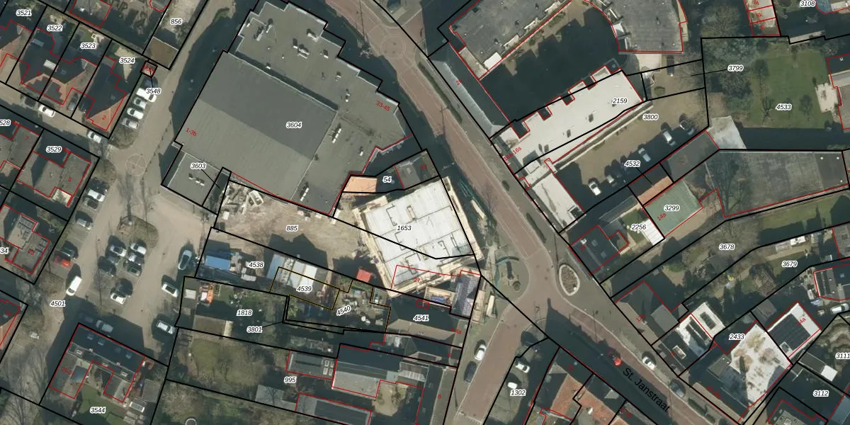 Het perceel waarop St. Janstraat 29-k staat heeft een oppervlakte van 370 m². Dit is een groot perceel. De perceeloppervlakte wordt geregistreerd door het Kadaster. Gedetailleerde informatie over de maten van dit perceel kunt u vinden in het rapport Kadastrale kaart met maatvoering van St. Janstraat 29-k.