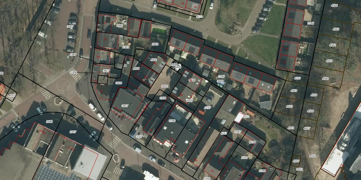 Het perceel waarop het adres ligt is HVN00-D-3929. De afkorting 'HVN00' staat voor kadastrale gemeente Hoeven. De gemiddelde perceelgrootte in Hoeven is 4388,29 m². Dit perceel is kleiner: de perceeloppervlakte bedraagt 155 m². Het kleinste perceel in de kadastrale gemeente is 0 m² groot. De grootste perceeloppervlakte is 33,1 ha. Er zijn geen andere adressen aanwezig op het perceel. De laatste wijziging in het de Basisregistratie Kadaster (BRK) was op 04-11-2009.