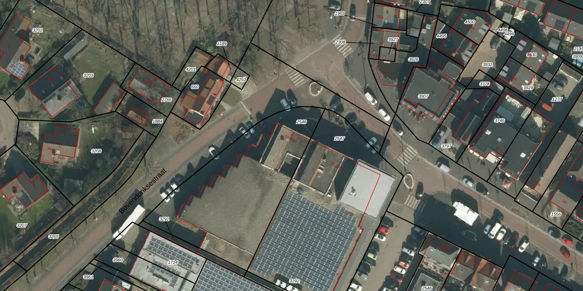Het perceel waarop het adres ligt is HVN00-D-2548. De afkorting 'HVN00' staat voor kadastrale gemeente Hoeven. Het perceel is 1600 m² groot. Dat is kleiner dan de gemiddelde perceeloppervlakte in Hoeven, dat op 4392,8 m² ligt. Het kleinste perceel in de kadastrale gemeente is 0 m² groot. De grootste perceeloppervlakte is 33,1 ha. Er zijn 8 adressen aanwezig op het perceel. In de Basisregistratie Kadaster (BRK) werden de grenzen van het perceel geregistreerd op 20-08-2009.