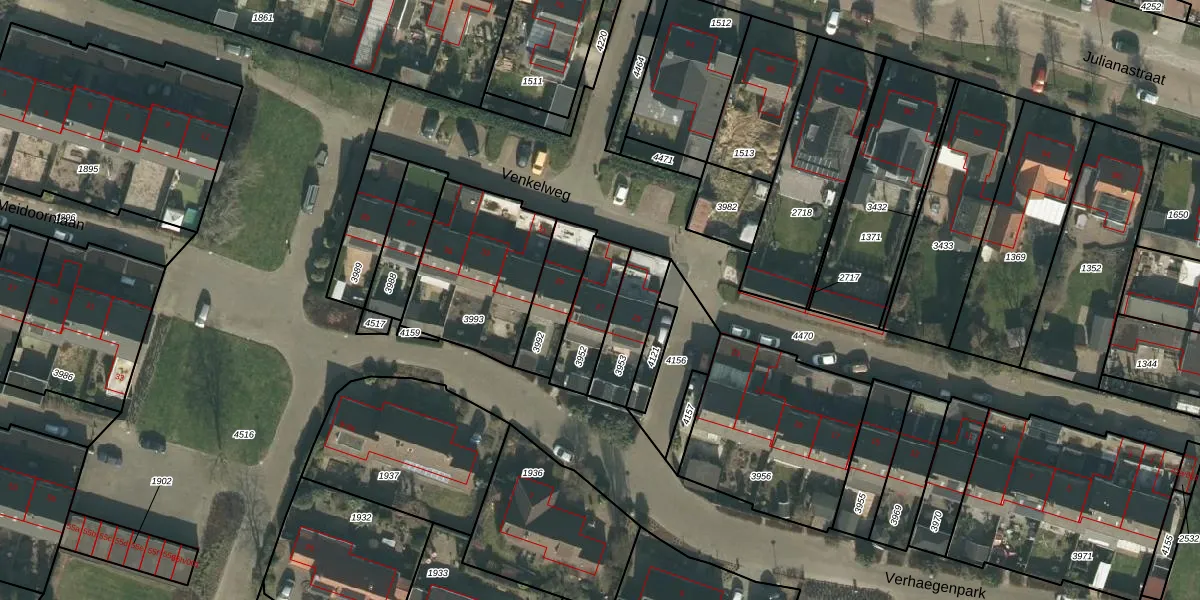 Gebruik de zoekbalk of klik op een perceel voor informatie over de adressen binnen dit perceel.