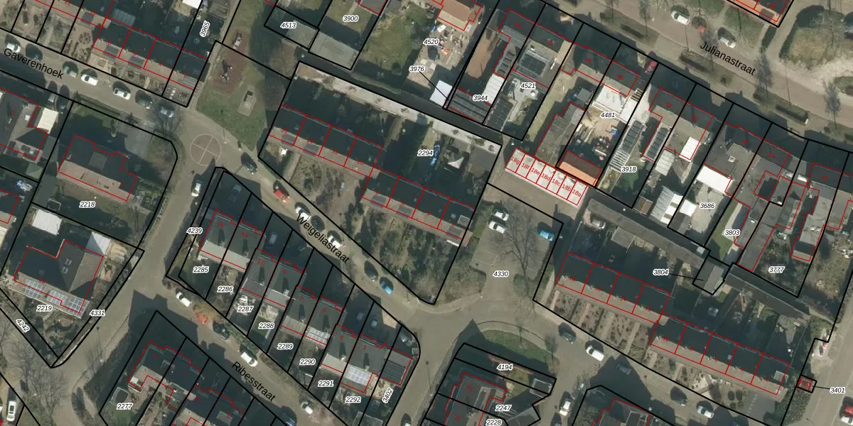 Weigeliastraat 4 is gelegen op kadastraal perceel HVN00D2294. Deze kadastrale aanduiding is uniek en wordt gebruikt door het Kadaster om eigendomsrechten en andere zakelijke rechten vast te leggen. Het perceel maakt onderdeel uit van de kadastrale gemeente Hoeven.