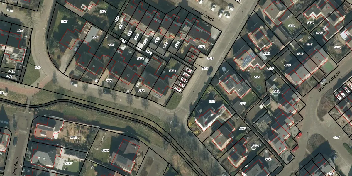 Het adres ligt op het perceel HVN00-D-2516, dat zich in de kadastrale gemeente Hoeven bevindt. Het perceel is kleiner dan gemiddeld in Hoeven. Het perceel is 18 m² groot, terwijl het gemiddelde ligt op 4385,71 m². De grootste perceeloppervlakte in de kadastrale gemeente is 33,1 ha. De kleinste oppervlakte bedraagt 0 m². Er zijn geen andere adressen aanwezig op het perceel. In de Basisregistratie Kadaster (BRK) werden de grenzen van het perceel geregistreerd op 08-09-2009.