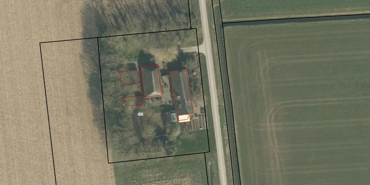 Het perceel waarop het adres ligt is HVN00-K-101. De afkorting 'HVN00' staat voor kadastrale gemeente Hoeven. De gemiddelde perceelgrootte in Hoeven is 4393,45 m². Dit perceel is kleiner: de perceeloppervlakte bedraagt 3720 m². Het kleinste perceel in de kadastrale gemeente is 0 m² groot. De grootste perceeloppervlakte is 33,1 ha. Dit is het enige adres dat aanwezig is op het perceel. In de Basisregistratie Kadaster (BRK) werden de grenzen van het perceel geregistreerd op 09-09-2009.