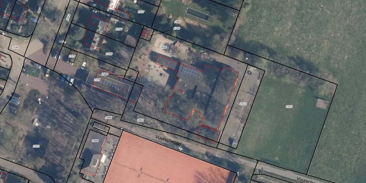 Het adres is gelegen op perceel 2690 in de sectie A en de kadastrale gemeente Maartensdijk. De kadastrale aanduiding is aldus MTD02-A-2690. Het perceel is 2560 m² groot. Dat is kleiner dan de gemiddelde perceeloppervlakte in Maartensdijk, dat op 6671,98 m² ligt. De grootste perceeloppervlakte in de kadastrale gemeente is 99,0 ha. De kleinste oppervlakte bedraagt 0 m². Er zijn 2 adressen aanwezig op het perceel. De huidige grenzen van het perceel zijn digitaal in de Basisregistratie Kadaster (BRK) geregistreerd op 08-08-2016.