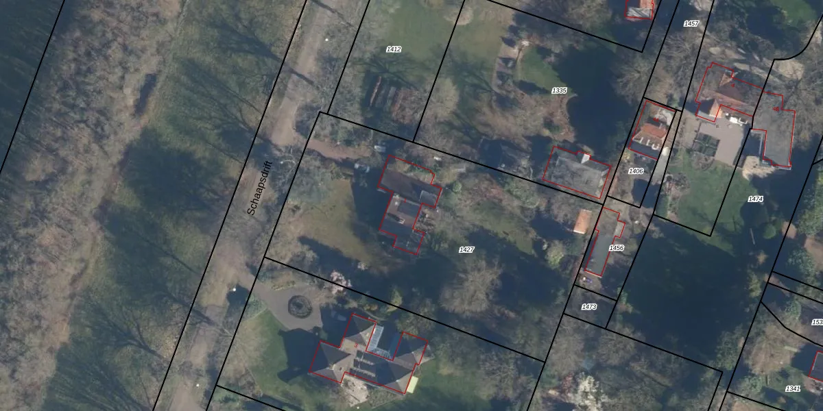 Het perceel waarop Schaapsdrift 1 staat heeft een oppervlakte van 2895 m². Dit is een zeer groot perceel. De perceeloppervlakte wordt geregistreerd door het Kadaster. Gedetailleerde informatie over de maten van dit perceel kunt u vinden in het rapport Kadastrale kaart met maatvoering van Schaapsdrift 1.