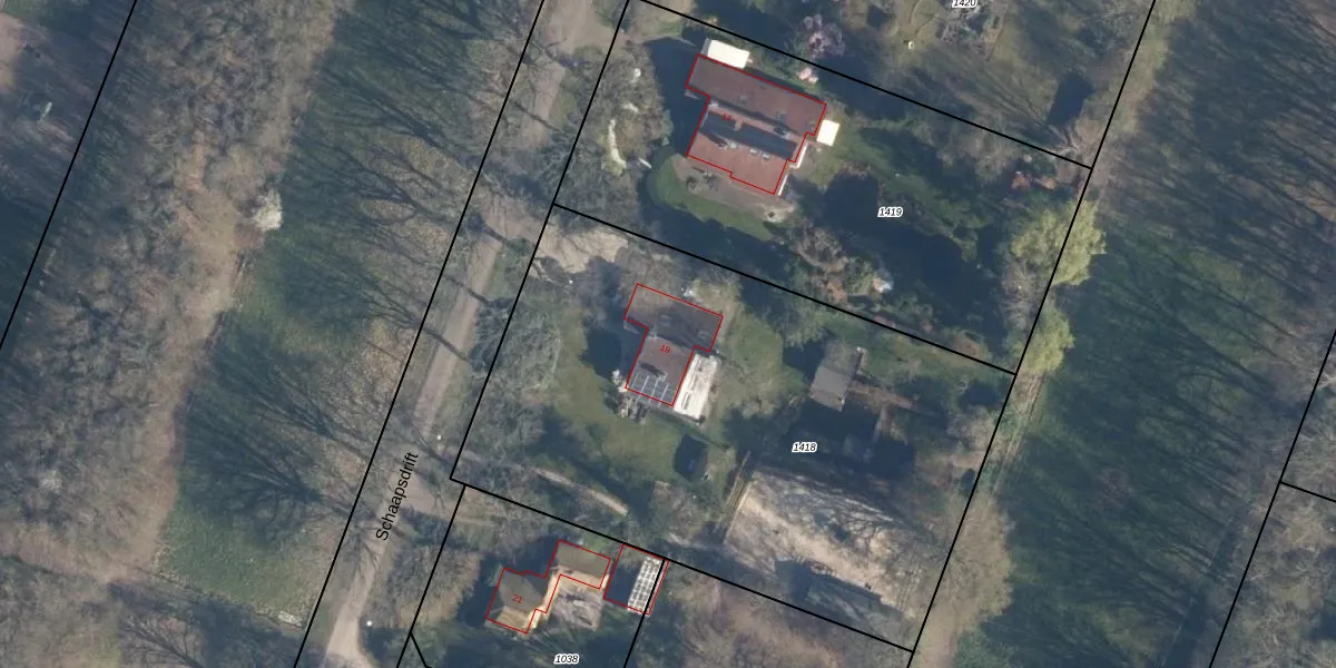 Het perceel waarop Schaapsdrift 19 staat heeft een oppervlakte van 3256 m². Dit is een zeer groot perceel. De perceeloppervlakte wordt geregistreerd door het Kadaster. Gedetailleerde informatie over de maten van dit perceel kunt u vinden in het rapport Kadastrale kaart met maatvoering van Schaapsdrift 19.