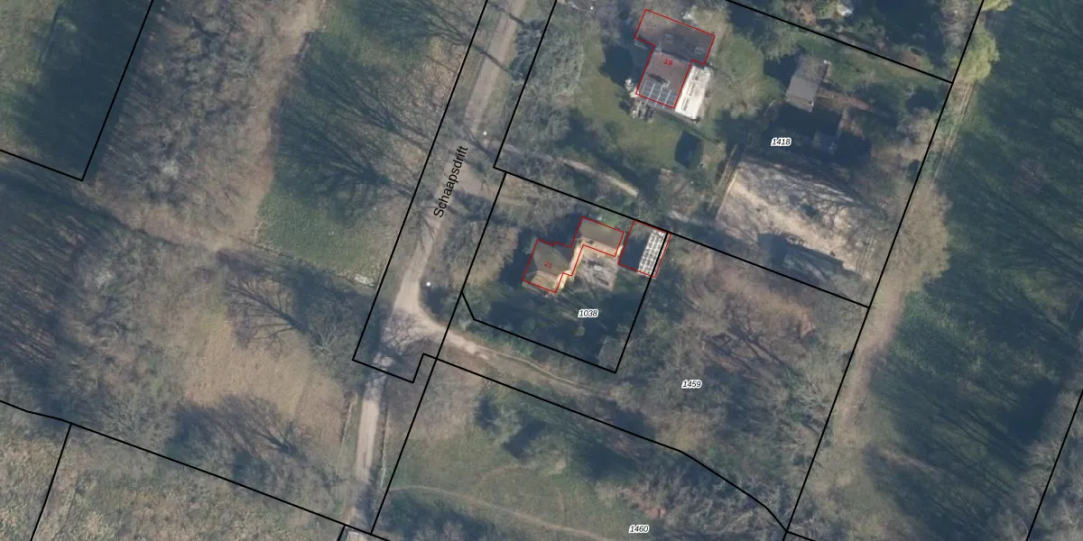 Het perceel waarop Schaapsdrift 21 staat heeft een oppervlakte van 883 m². Dit is een groot perceel. De perceeloppervlakte wordt geregistreerd door het Kadaster. Gedetailleerde informatie over de maten van dit perceel kunt u vinden in het rapport Kadastrale kaart met maatvoering van Schaapsdrift 21.