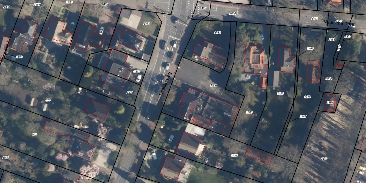 Het perceel waarop Tolakkerweg 1-E staat heeft een oppervlakte van 1292 m². Dit is een zeer groot perceel. De perceeloppervlakte wordt geregistreerd door het Kadaster. Gedetailleerde informatie over de maten van dit perceel kunt u vinden in het rapport Kadastrale kaart met maatvoering van Tolakkerweg 1-E.