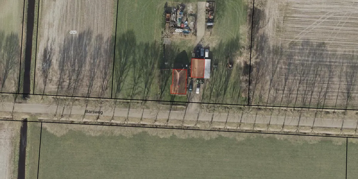 Het perceel waarop Barsweg 3 staat heeft een oppervlakte van 5360 m². Dit is een zeer groot perceel. De perceeloppervlakte wordt geregistreerd door het Kadaster. Gedetailleerde informatie over de maten van dit perceel kunt u vinden in het rapport Kadastrale kaart met maatvoering van Barsweg 3.