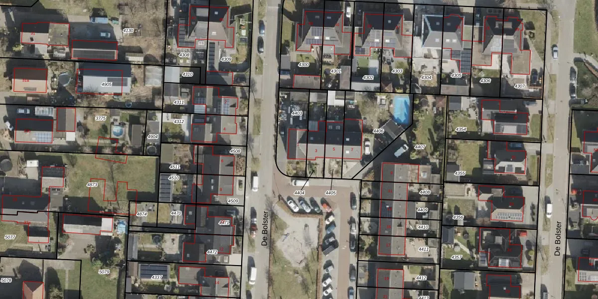 Het perceel waarop De Bolster 1 staat heeft een oppervlakte van 295 m². Dit is een middelgroot perceel. De perceeloppervlakte wordt geregistreerd door het Kadaster. Gedetailleerde informatie over de maten van dit perceel kunt u vinden in het rapport Kadastrale kaart met maatvoering van De Bolster 1.