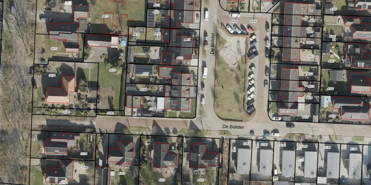 Het perceel waarop De Bolster 16 staat heeft een oppervlakte van 295 m². Dit is een middelgroot perceel. De perceeloppervlakte wordt geregistreerd door het Kadaster. Gedetailleerde informatie over de maten van dit perceel kunt u vinden in het rapport Kadastrale kaart met maatvoering van De Bolster 16.