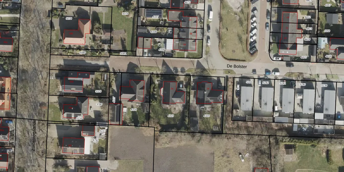 Het perceel waarop De Bolster 24 staat heeft een oppervlakte van 753 m². Dit is een groot perceel. De perceeloppervlakte wordt geregistreerd door het Kadaster. Gedetailleerde informatie over de maten van dit perceel kunt u vinden in het rapport Kadastrale kaart met maatvoering van De Bolster 24.