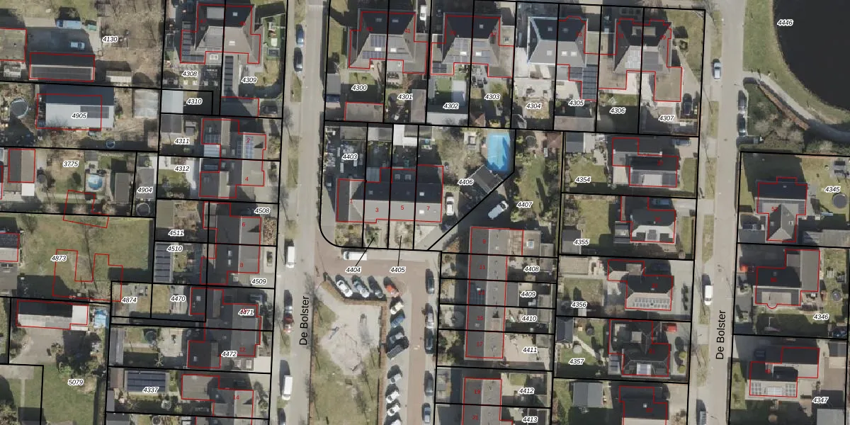 Het perceel waarop De Bolster 7 staat heeft een oppervlakte van 486 m². Dit is een groot perceel. De perceeloppervlakte wordt geregistreerd door het Kadaster. Gedetailleerde informatie over de maten van dit perceel kunt u vinden in het rapport Kadastrale kaart met maatvoering van De Bolster 7.