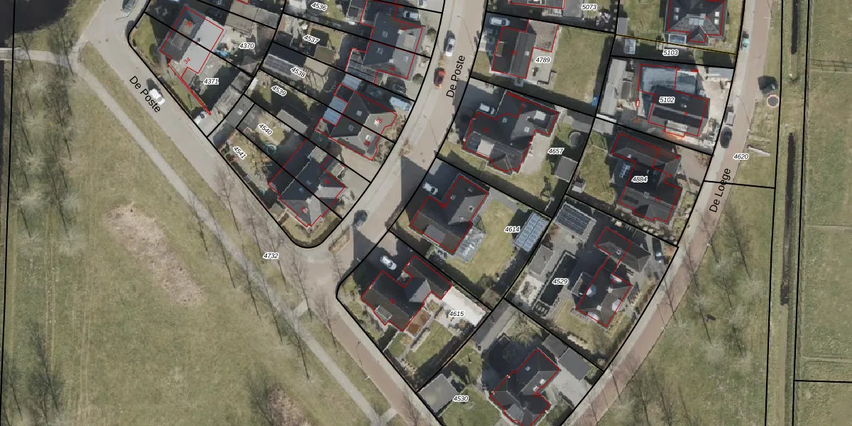 Het perceel waarop De Poste 33 staat heeft een oppervlakte van 718 m². Dit is een groot perceel. De perceeloppervlakte wordt geregistreerd door het Kadaster. Gedetailleerde informatie over de maten van dit perceel kunt u vinden in het rapport Kadastrale kaart met maatvoering van De Poste 33.