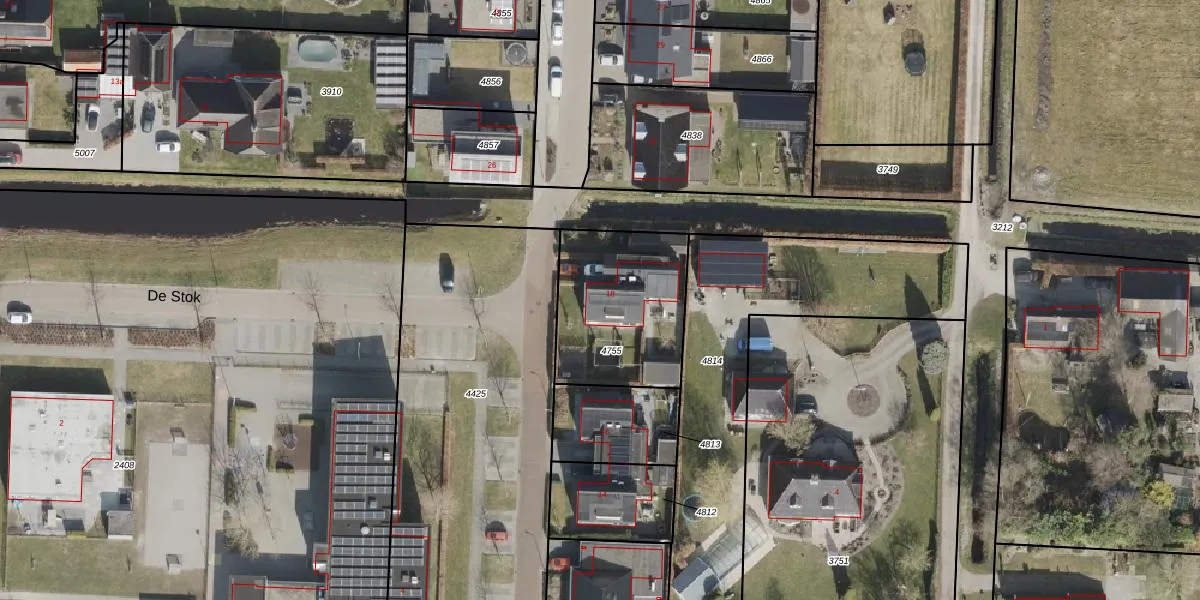 De Stok 18 is gelegen op kadastraal perceel HGV00L4755. Deze kadastrale aanduiding is uniek en wordt gebruikt door het Kadaster om eigendomsrechten en andere zakelijke rechten vast te leggen. Het perceel maakt onderdeel uit van de kadastrale gemeente Hoogeveen.