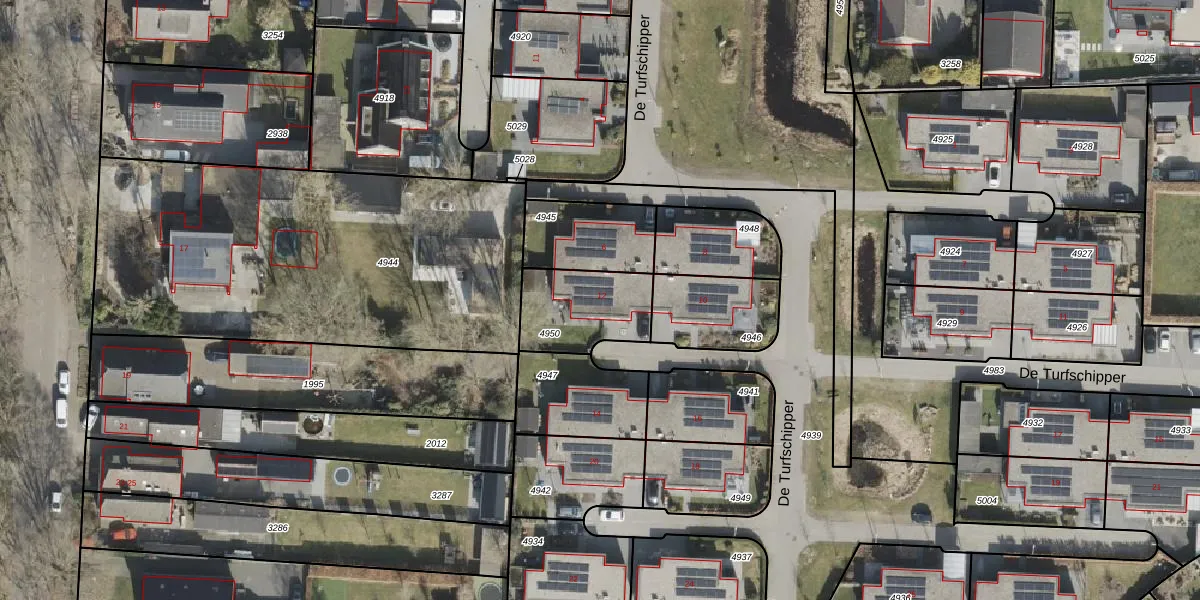 De Turfschipper 12 is gelegen op kadastraal perceel HGV00L4950. Deze kadastrale aanduiding is uniek en wordt gebruikt door het Kadaster om eigendomsrechten en andere zakelijke rechten vast te leggen. Het perceel maakt onderdeel uit van de kadastrale gemeente Hoogeveen.