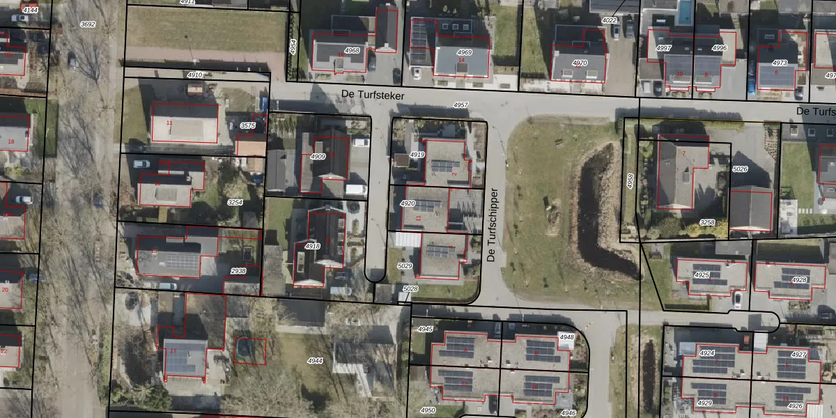 De Turfsteker 11 is gelegen op kadastraal perceel HGV00L4920. Deze kadastrale aanduiding is uniek en wordt gebruikt door het Kadaster om eigendomsrechten en andere zakelijke rechten vast te leggen. Het perceel maakt onderdeel uit van de kadastrale gemeente Hoogeveen.
