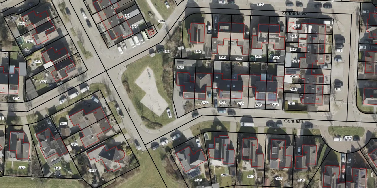 Het perceel waarop Gentiaan 27 staat heeft een oppervlakte van 331 m². Dit is een groot perceel. De perceeloppervlakte wordt geregistreerd door het Kadaster. Gedetailleerde informatie over de maten van dit perceel kunt u vinden in het rapport Kadastrale kaart met maatvoering van Gentiaan 27.
