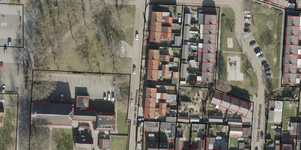 Jan van der Helmweg 11 is gelegen op kadastraal perceel HGV00K2955. Deze kadastrale aanduiding is uniek en wordt gebruikt door het Kadaster om eigendomsrechten en andere zakelijke rechten vast te leggen. Het perceel maakt onderdeel uit van de kadastrale gemeente Hoogeveen.