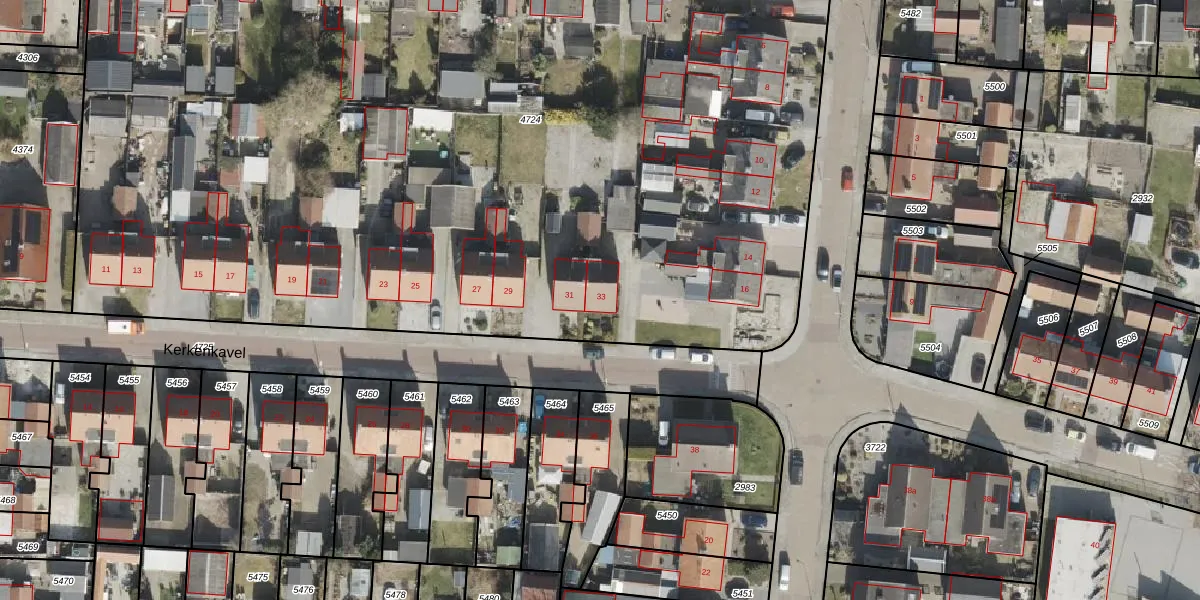 Het perceel waarop Kerkenkavel 33 staat heeft een oppervlakte van 9078 m². Dit is een zeer groot perceel. De perceeloppervlakte wordt geregistreerd door het Kadaster. Gedetailleerde informatie over de maten van dit perceel kunt u vinden in het rapport Kadastrale kaart met maatvoering van Kerkenkavel 33.