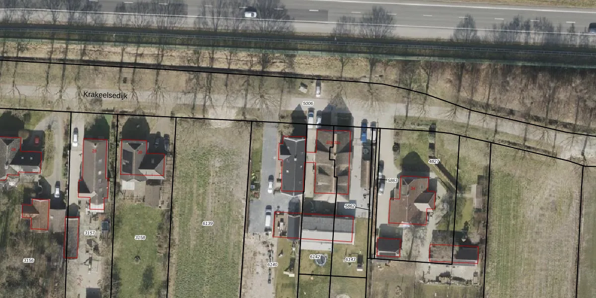 Het perceel waarop Krakeelsedijk 32-a staat heeft een oppervlakte van 1345 m². Dit is een zeer groot perceel. De perceeloppervlakte wordt geregistreerd door het Kadaster. Gedetailleerde informatie over de maten van dit perceel kunt u vinden in het rapport Kadastrale kaart met maatvoering van Krakeelsedijk 32-a.