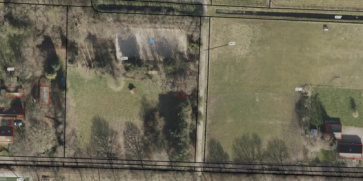 Het perceel waarop Oostwijk 3-a staat heeft een oppervlakte van 5940 m². Dit is een zeer groot perceel. De perceeloppervlakte wordt geregistreerd door het Kadaster. Gedetailleerde informatie over de maten van dit perceel kunt u vinden in het rapport Kadastrale kaart met maatvoering van Oostwijk 3-a.