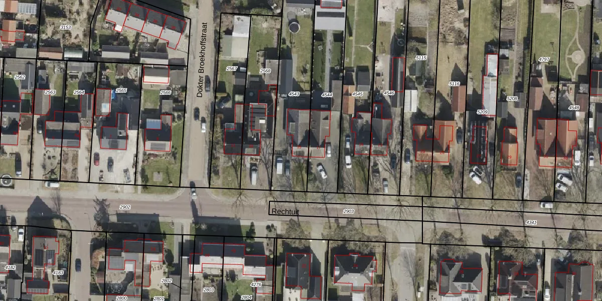Het perceel waarop Rechtuit 15 staat heeft een oppervlakte van 774 m². Dit is een groot perceel. De perceeloppervlakte wordt geregistreerd door het Kadaster. Gedetailleerde informatie over de maten van dit perceel kunt u vinden in het rapport Kadastrale kaart met maatvoering van Rechtuit 15.