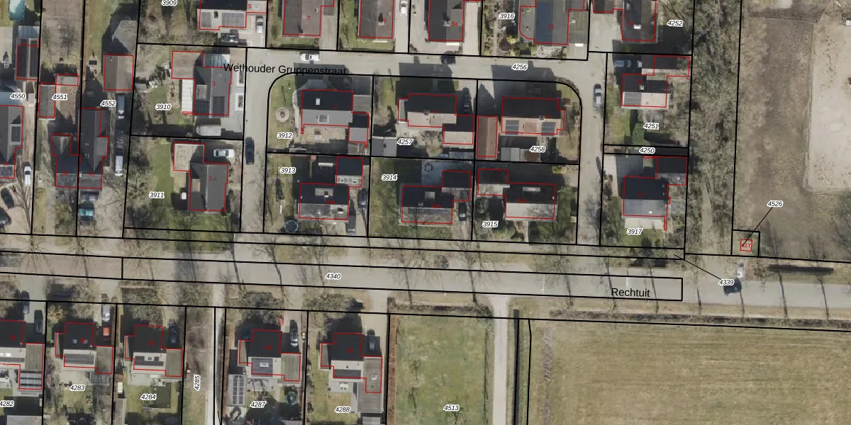 Het perceel waarop Rechtuit 41-b staat heeft een oppervlakte van 467 m². Dit is een groot perceel. De perceeloppervlakte wordt geregistreerd door het Kadaster. Gedetailleerde informatie over de maten van dit perceel kunt u vinden in het rapport Kadastrale kaart met maatvoering van Rechtuit 41-b.