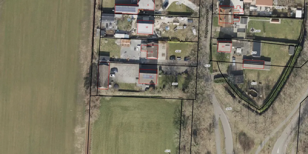 Riegshoogtendijk 14 is gelegen op kadastraal perceel HGV00D5066. Deze kadastrale aanduiding is uniek en wordt gebruikt door het Kadaster om eigendomsrechten en andere zakelijke rechten vast te leggen. Het perceel maakt onderdeel uit van de kadastrale gemeente Hoogeveen.