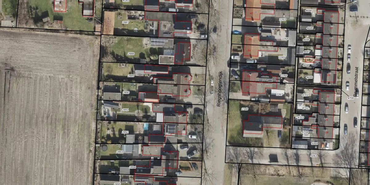 Het perceel waarop Riegshoogtendijk 76 staat heeft een oppervlakte van 600 m². Dit is een groot perceel. De perceeloppervlakte wordt geregistreerd door het Kadaster. Gedetailleerde informatie over de maten van dit perceel kunt u vinden in het rapport Kadastrale kaart met maatvoering van Riegshoogtendijk 76.