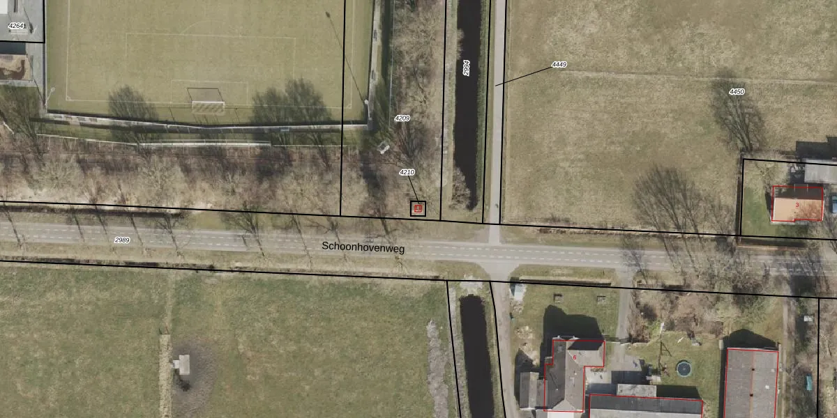 Het perceel waarop Schoonhovenweg 1-T staat heeft een oppervlakte van 12 m². Dit is een klein perceel. De perceeloppervlakte wordt geregistreerd door het Kadaster. Gedetailleerde informatie over de maten van dit perceel kunt u vinden in het rapport Kadastrale kaart met maatvoering van Schoonhovenweg 1-T.