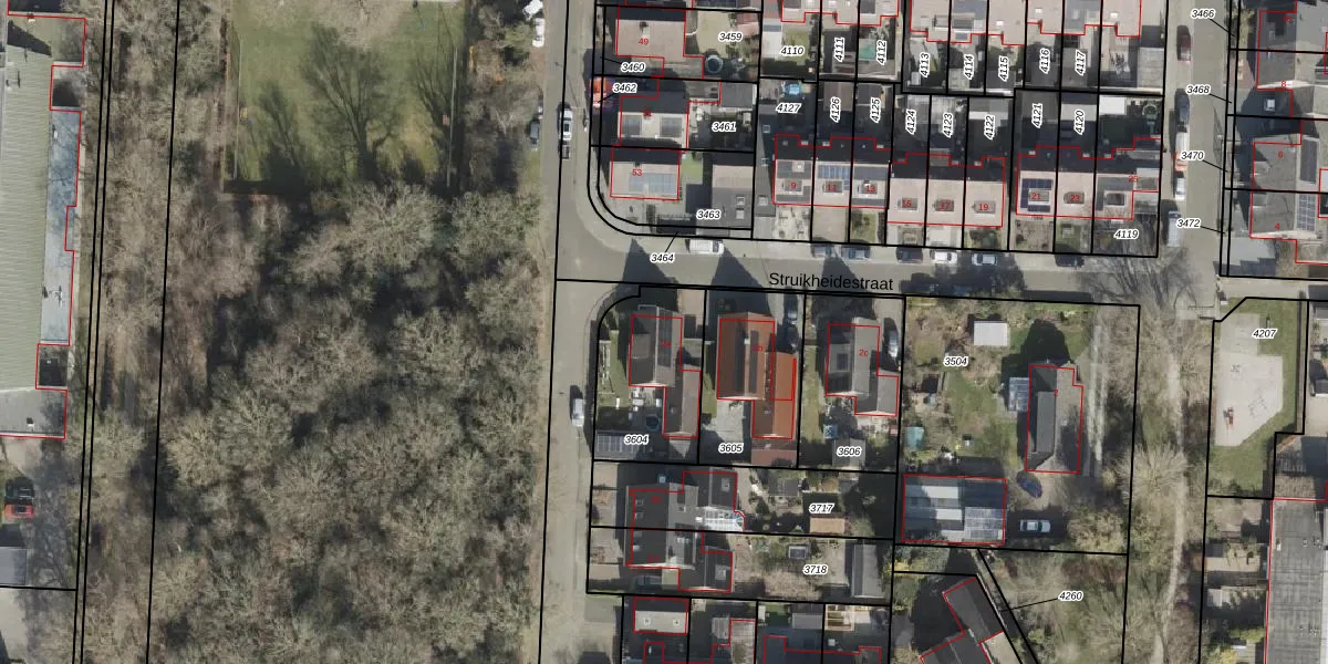 Het perceel waarop Struikheidestraat 2-a staat heeft een oppervlakte van 403 m². Dit is een groot perceel. De perceeloppervlakte wordt geregistreerd door het Kadaster. Gedetailleerde informatie over de maten van dit perceel kunt u vinden in het rapport Kadastrale kaart met maatvoering van Struikheidestraat 2-a.