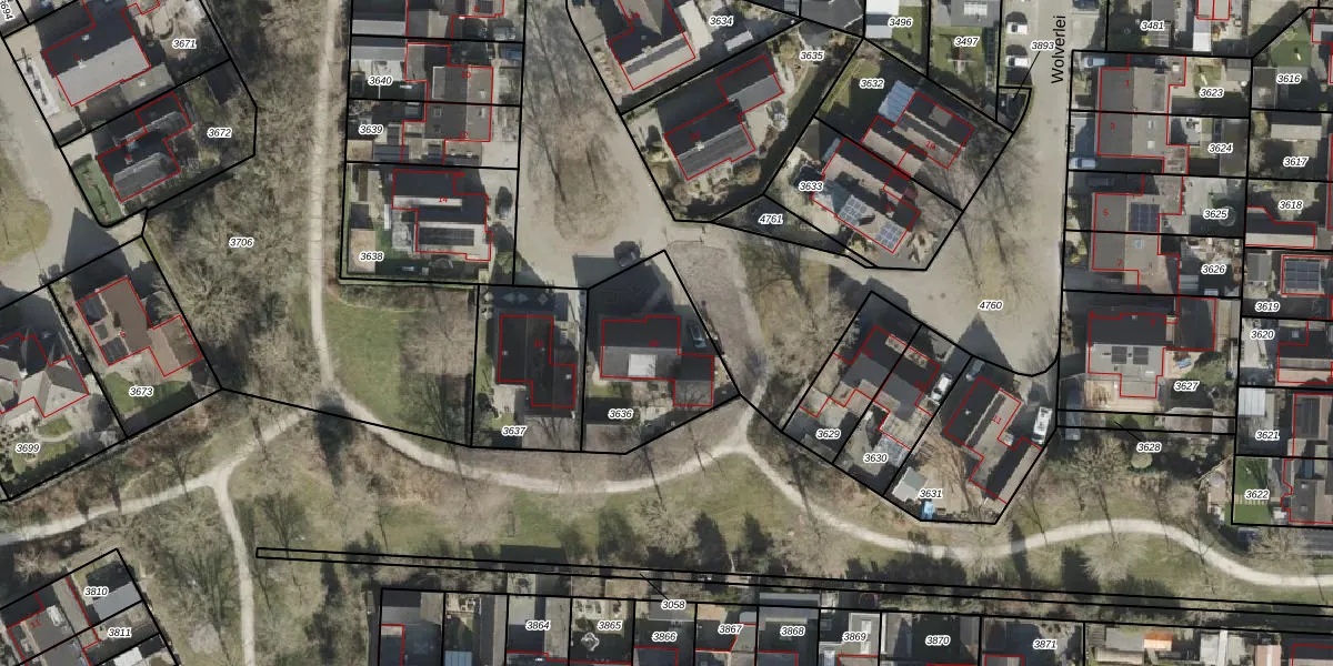 Gebruik de zoekbalk of klik op een perceel voor informatie over de adressen binnen dit perceel.