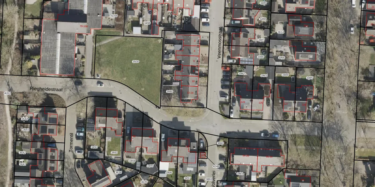 Veenmosstraat 14 is gelegen op kadastraal perceel HGV00L3480. Deze kadastrale aanduiding is uniek en wordt gebruikt door het Kadaster om eigendomsrechten en andere zakelijke rechten vast te leggen. Het perceel maakt onderdeel uit van de kadastrale gemeente Hoogeveen.