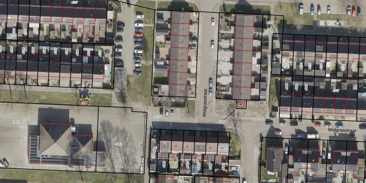 Wolgrasstraat 14 is gelegen op kadastraal perceel HGV00L2871. Deze kadastrale aanduiding is uniek en wordt gebruikt door het Kadaster om eigendomsrechten en andere zakelijke rechten vast te leggen. Het perceel maakt onderdeel uit van de kadastrale gemeente Hoogeveen.