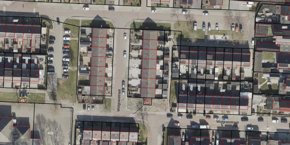 Wolgrasstraat 9 is gelegen op kadastraal perceel HGV00L2872. Deze kadastrale aanduiding is uniek en wordt gebruikt door het Kadaster om eigendomsrechten en andere zakelijke rechten vast te leggen. Het perceel maakt onderdeel uit van de kadastrale gemeente Hoogeveen.