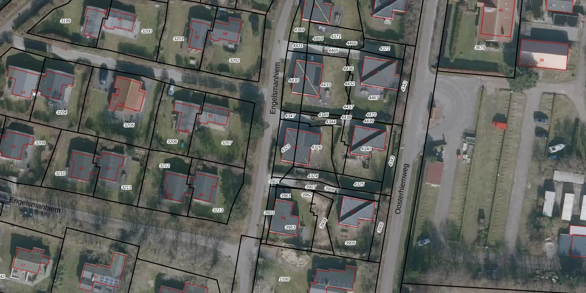 Engelsmanhiem 66 is gelegen op kadastraal perceel BLM00G4323. Deze kadastrale aanduiding is uniek en wordt gebruikt door het Kadaster om eigendomsrechten en andere zakelijke rechten vast te leggen. Het perceel maakt onderdeel uit van de kadastrale gemeente Ballum.