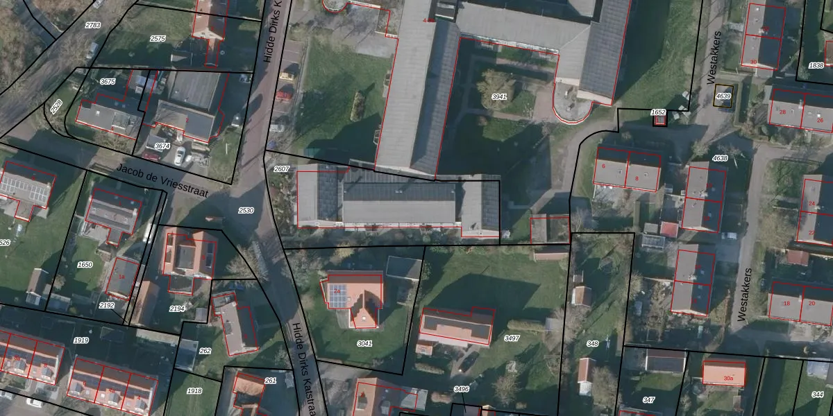 Het perceel waarop Hidde Dirks Katstraat 30 staat heeft een oppervlakte van 1005 m². Dit is een zeer groot perceel. De perceeloppervlakte wordt geregistreerd door het Kadaster. Gedetailleerde informatie over de maten van dit perceel kunt u vinden in het rapport Kadastrale kaart met maatvoering van Hidde Dirks Katstraat 30.