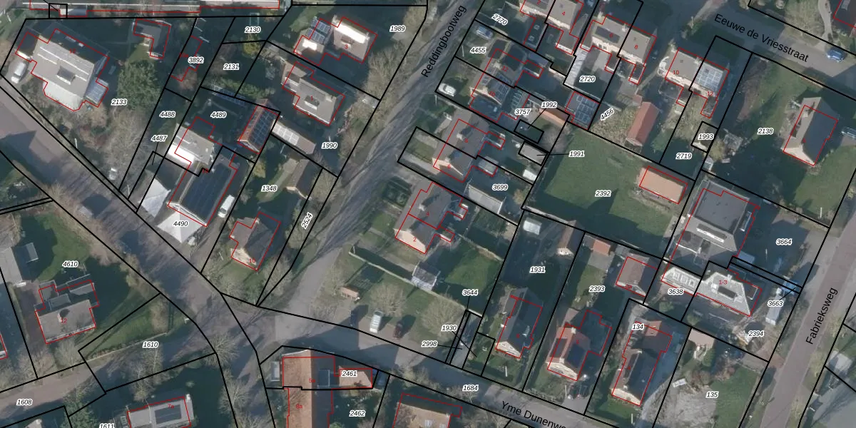 Het perceel waarop Reddingbootweg 4 staat heeft een oppervlakte van 1,0 ha. Dit is een zeer groot perceel. De perceeloppervlakte wordt geregistreerd door het Kadaster. Gedetailleerde informatie over de maten van dit perceel kunt u vinden in het rapport Kadastrale kaart met maatvoering van Reddingbootweg 4.